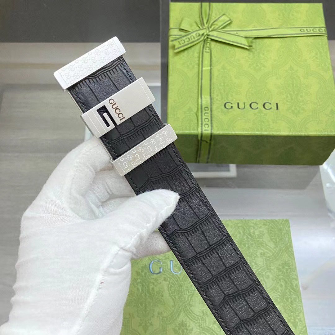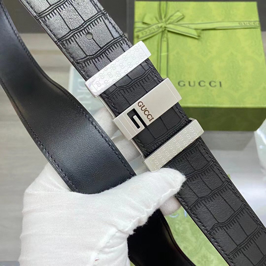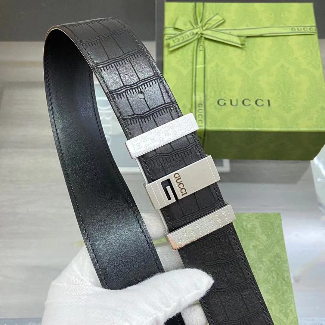 Gucci’s black crocodile texture luxury belt shows unparalleled nobility and taste with its extraordinary material and unique design. Selected top-grade black leather material, finely processed, with fine surface texture, soft and comfortable feel, and great texture. The belt buckle head is made of high-quality metal with silver luster, showing a low-key sense of luxury. The unique “GUCCI” logo is engraved on the buckle, which is simple yet brand-specific.