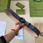 This Gucci black G logo belt is the perfect combination of fashion and taste. The black belt is made of high-quality materials, which is strong and wear-resistant, while showing a low-key sense of luxury. The black buckle on the belt has a simple yet elegant design, and the G logo inlaid in the center is the symbol of the Gucci brand, highlighting the nobility and dignity of the brand.