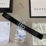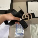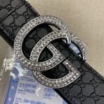 The Brilliant Star series diamond-decorated belt has become a shining star among men’s fashion accessories with its ultimate luxury and unique design. The belt is made of high-quality black leather, which is soft and delicate to the touch, wear-resistant and durable. The most eye-catching thing is that the belt is inlaid with countless small diamonds, just like the stars in the night sky, shining with charming light. The belt buckle adopts a metal capital “G” design, which complements the diamond decoration and shows unparalleled nobility and luxury.
