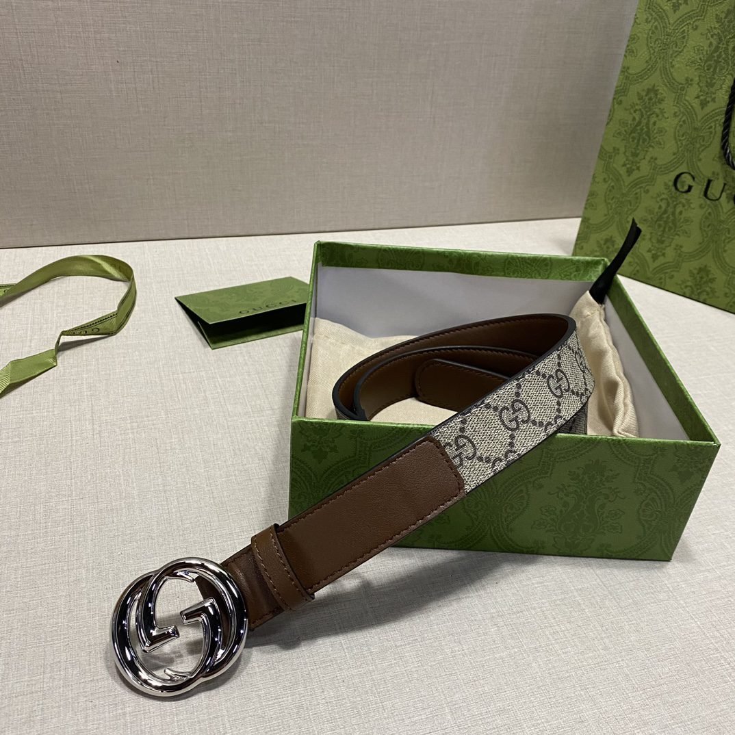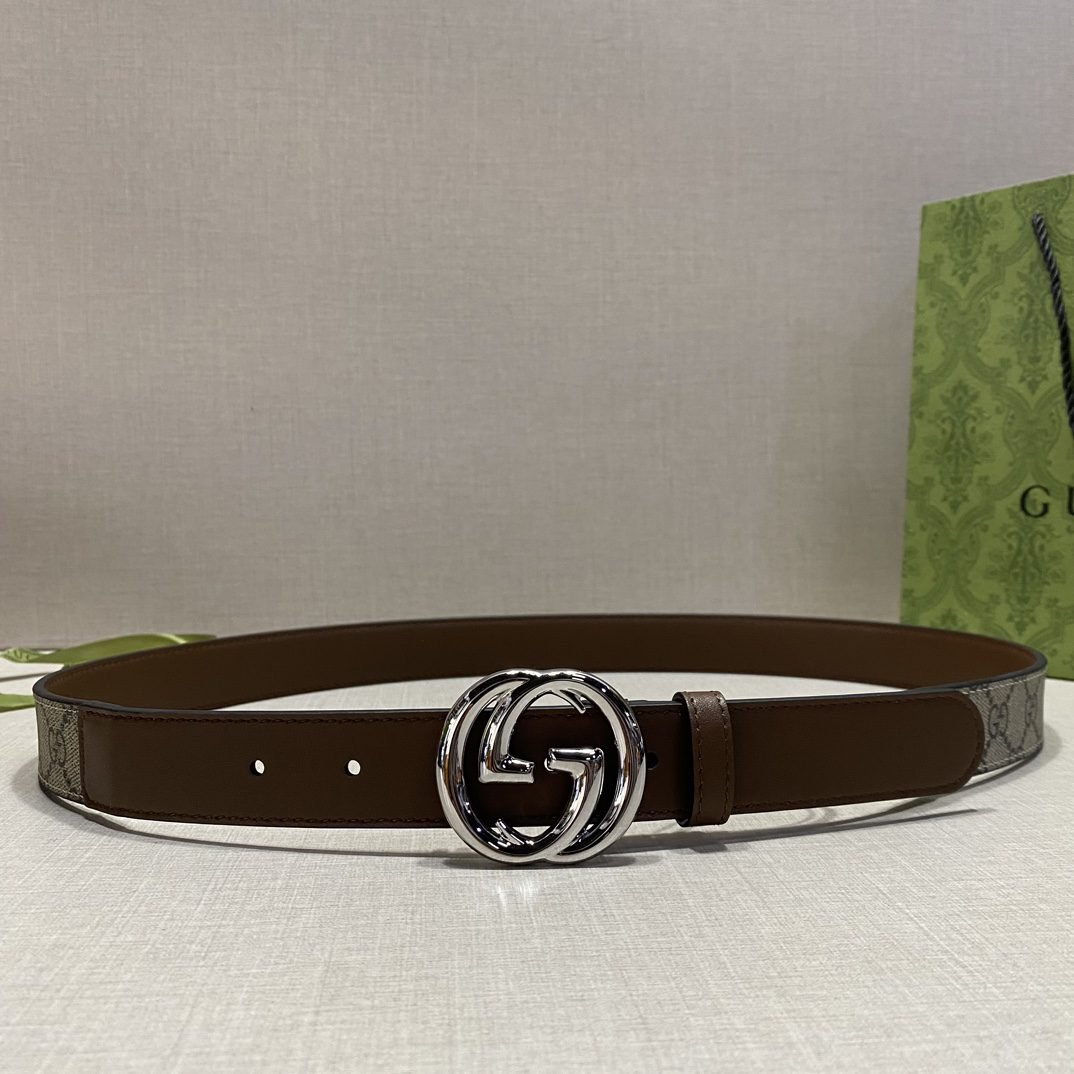 Gucci brown and beige classic double G buckle belt, simple and elegant, low-key and luxurious