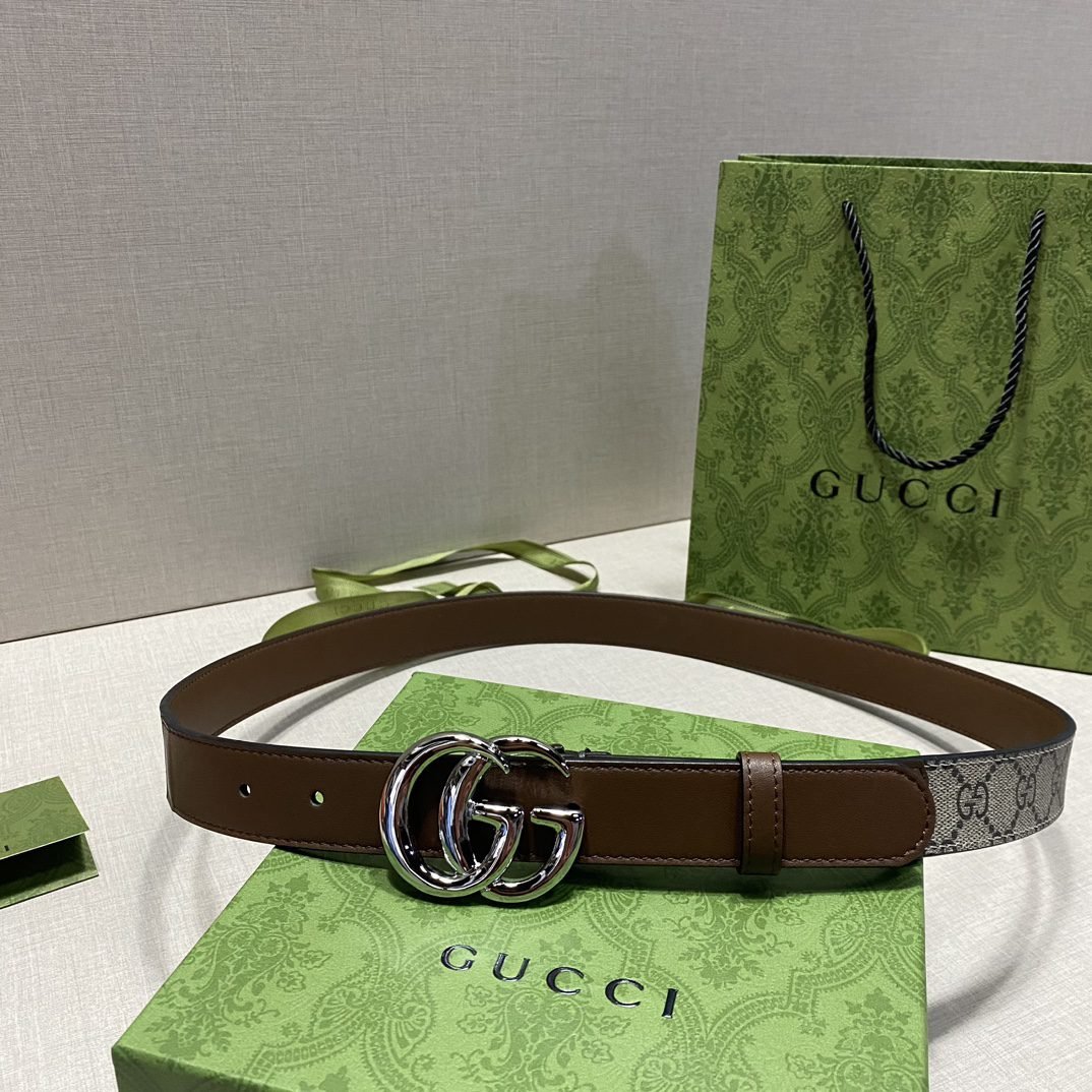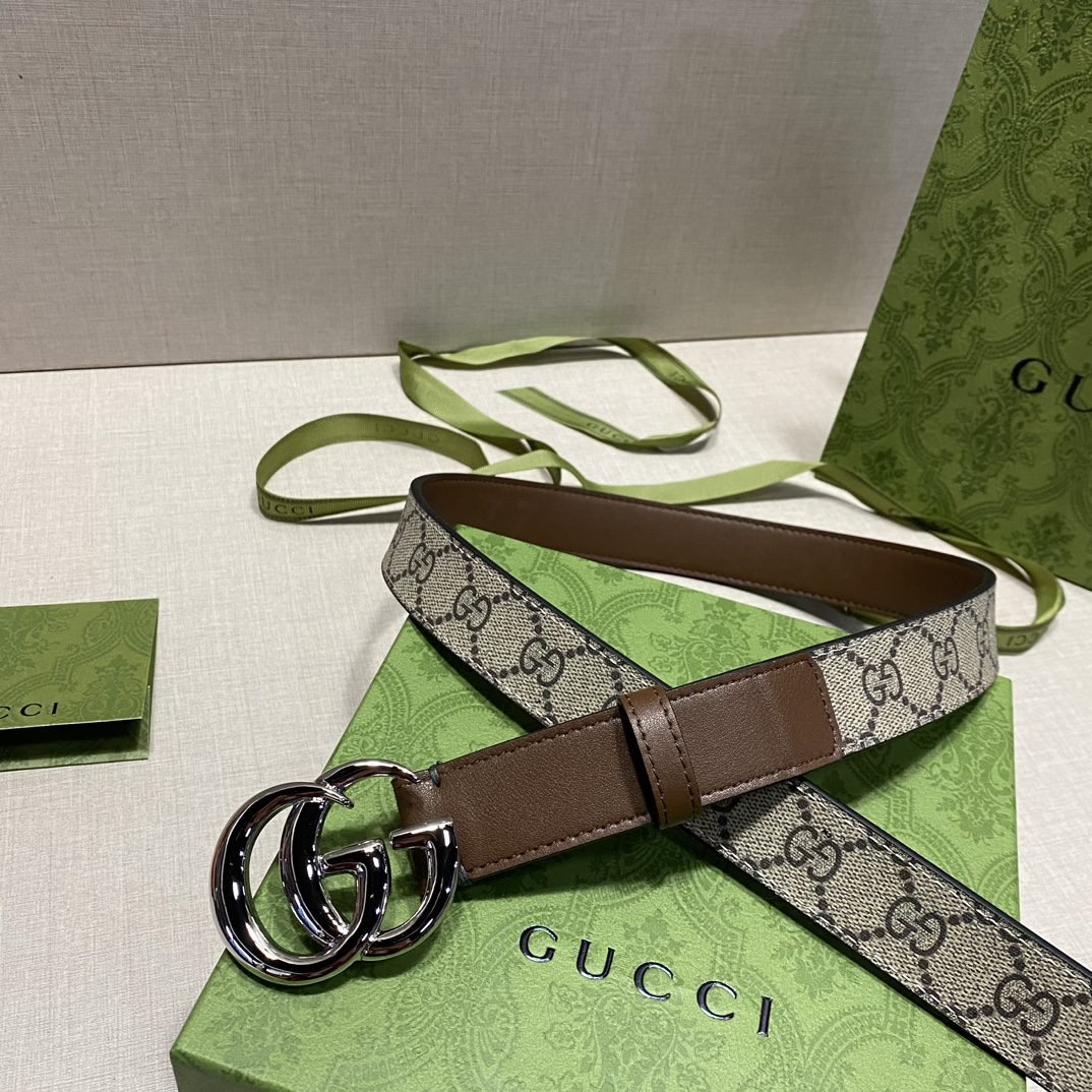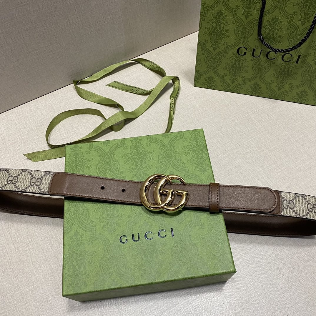 Home Belt GUCCI Belt Gucci brown and beige classic double G buckle belt, simple and elegant, low-key and luxurious