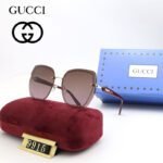 The lenses present a charming luster, adding a touch of mystery and charm to the wearer. The square frame has smooth lines, simple yet elegant, showcasing GUCCI’s consistent fashion taste. The metal decoration on the frame adds a touch of highlights to this sunglasses, making it stand out among many fashionable items. This pair of sunglasses is carefully placed on a red velvet cushion, which is soft and comfortable, protecting the glasses from damage and making them suitable for various occasions, whether for leisure vacation or business travel, showcasing your unique taste.