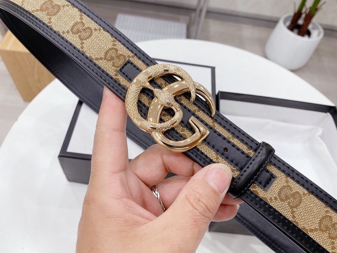 Gucci brown and beige classic double G buckle belt, simple and elegant, low-key and luxurious