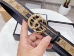 This Gucci brown woven black belt combines classic and fashionable elements, highlighting the brand’s high-end quality. The belt is made of high-quality leather material, with a delicate black luster on the surface, and a unique brown and white woven pattern, adding a retro and elegant atmosphere. The silver and gold buckles are engraved with the brand’s iconic “GUCCI” and the center is decorated with an exquisite badge design, highlighting the brand’s unique charm. The entire belt has smooth lines and a simple yet stylish design, suitable for all occasions.