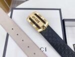This Gucci classic automatic buckle black belt perfectly combines the brand’s traditional elements with modern design, showing unparalleled charm. The belt is made of high-quality leather, which is delicate and elastic. It is carefully crafted to show elegant texture and long-lasting durability. The buckle head is made of metal material, which shines and highlights the brand’s unique charm. The overall design is simple yet noble, perfectly interpreting the brand spirit of Gucci.