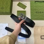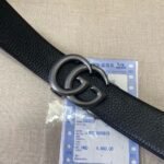 This GUCCI classic black belt with double G logo has become a favorite in the fashion world for its unique design and exquisite craftsmanship. The belt uses black as the main color, with a gold double G logo buckle, highlighting the wearer’s noble temperament and unique taste. Whether it is a business occasion or leisure time, this belt can be your right-hand man, adding a touch of color to your outfit.