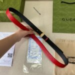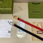 Gucci’s classic black and red textured leather belt is a great choice for everyday wear. It can be paired with formal wear as well as casual wear, highlighting fashion and personality. Whether it is a business occasion or a leisure time, this belt can become the highlight of your look