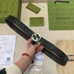 Gucci’s classic black belt is suitable for wearing on various occasions, whether it is a business meeting, dinner or leisure time, it can show the wearer’s taste and charm. It can not only be matched with formal clothing such as suits and shirts, but also perfectly blended with casual clothing such as jeans and T-shirts, adding a touch of fashion to the overall look.