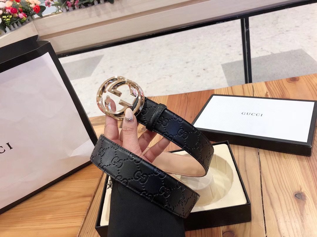 Home Belt GUCCI Belt Gucci classic black cowhide leather belt with gold buckle, soft touch, smooth lines and clear texture