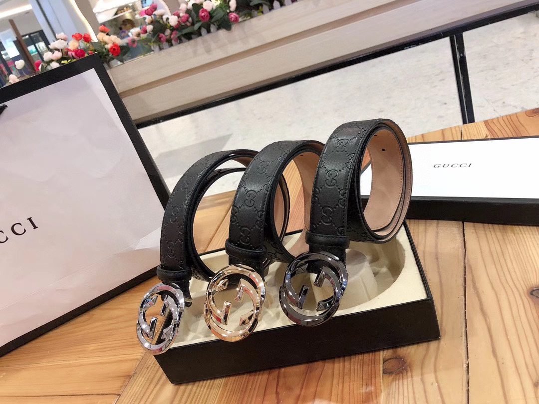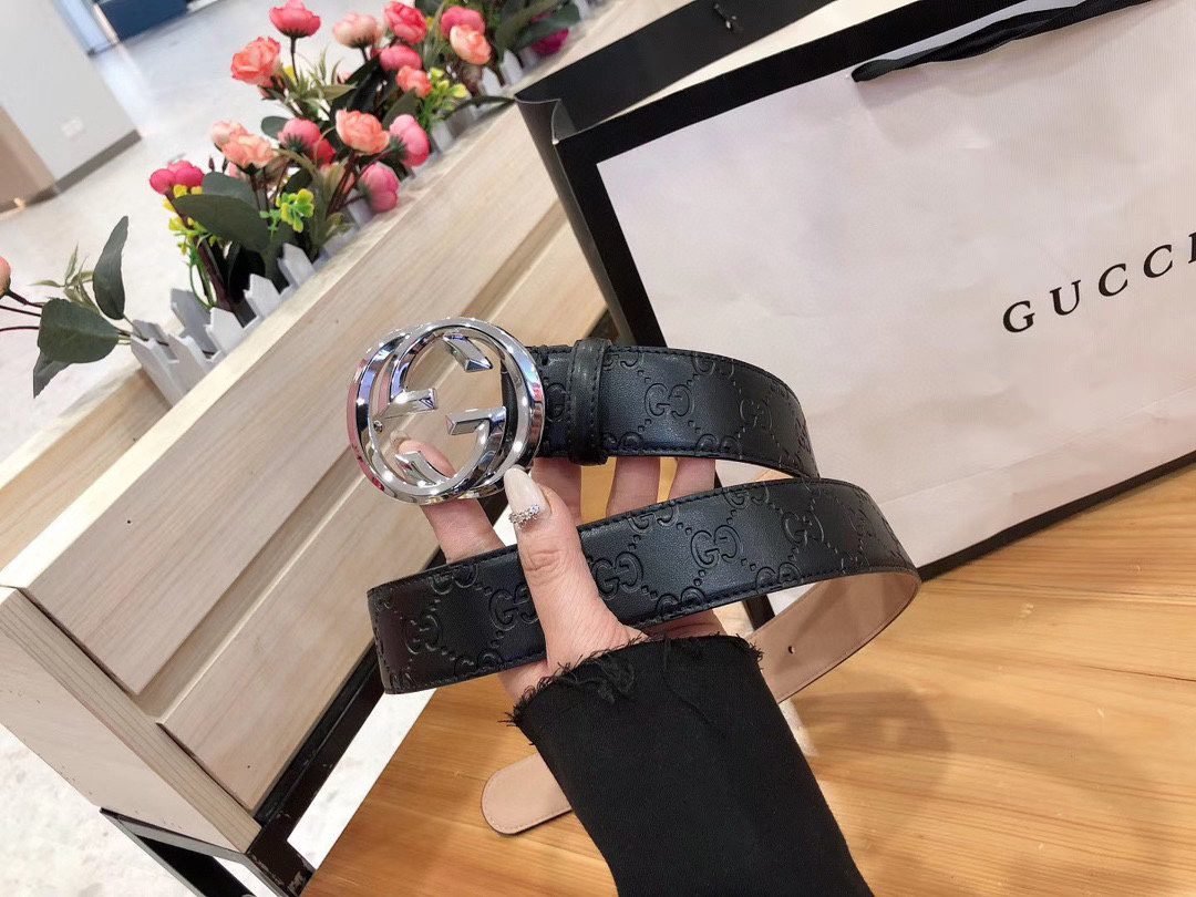 Home Belt GUCCI Belt Gucci classic black cowhide leather belt with silver buckle, soft touch, smooth lines and clear texture