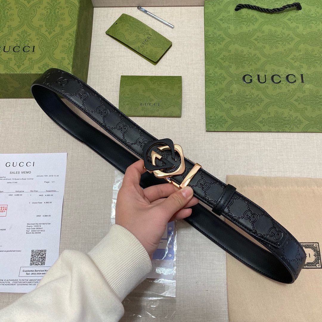Whether it is a business occasion or leisure time, this Gucci classic black G-pattern gold buckle belt can be the finishing touch of your overall look, showing your elegance and confidence. It will become an indispensable fashion item in your wardrobe, making you the center of attention in any occasion