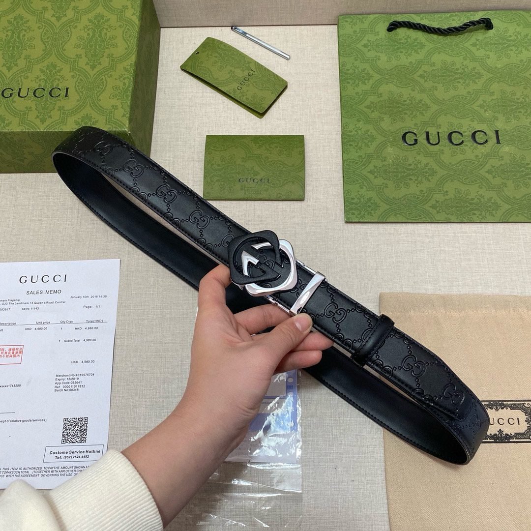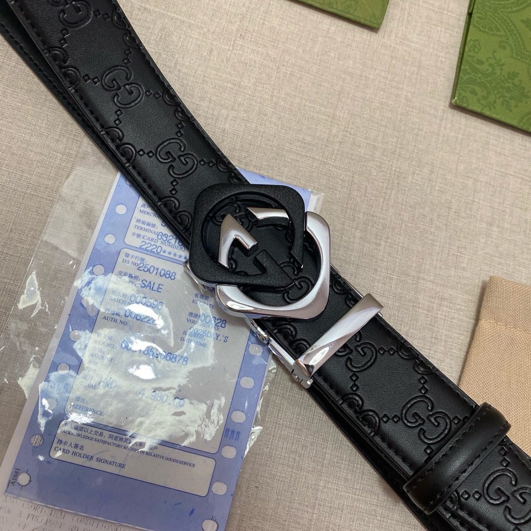 Whether it is a business occasion or leisure time, this Gucci classic black G-pattern silver buckle belt can be the finishing touch of your overall look, showing your elegance and confidence. It will become an indispensable fashion item in your wardrobe, making you the center of attention in any occasion