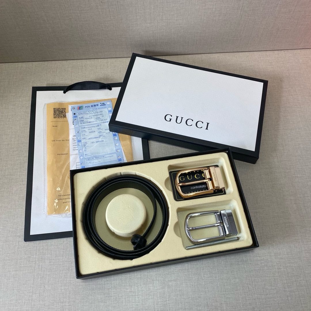 This Gucci classic black leather belt with gold buckle has become a model of fashion accessories with its exquisite design and high-quality craftsmanship. The belt is made of high-quality black leather, and the delicate texture on the surface not only adds texture, but also shows its high-end quality. The gold buckle design is simple and generous, with the word “GUCCI” printed on it, highlighting the unique charm of the brand. The size of the belt and buckle is suitable for adults, whether it is paired with formal or casual wear, it can show the wearer’s elegant temperament and unique taste.