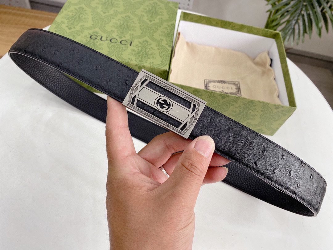 Gucci’s classic black silver buckle belt interprets the low-key luxury fashion concept with its timeless charm. It is made of top-quality leather materials and crafted with fine craftsmanship to present an elegant and wear-resistant texture. The silver buckle on the belt adopts the brand’s iconic design, which is simple yet exquisite, highlighting the wearer’s unique taste and personality.