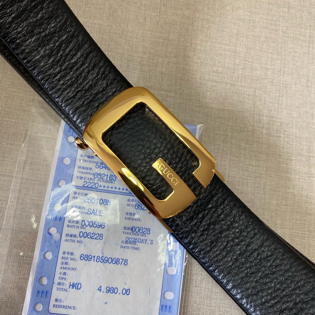 This Gucci classic black textured leather belt has become a shining star in the fashion world with its unique design and excellent quality. The belt is made of high-quality leather with clear surface texture, soft and comfortable touch, wear-resistant and durable, making it an excellent choice for your daily wear.