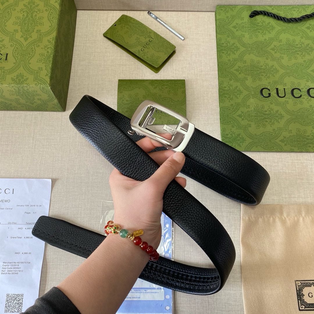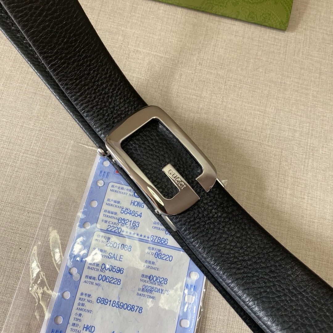 This Gucci classic black textured leather belt has become a shining star in the fashion world with its unique design and excellent quality. The belt is made of high-quality leather with clear surface texture, soft and comfortable touch, wear-resistant and durable, making it an excellent choice for your daily wear.