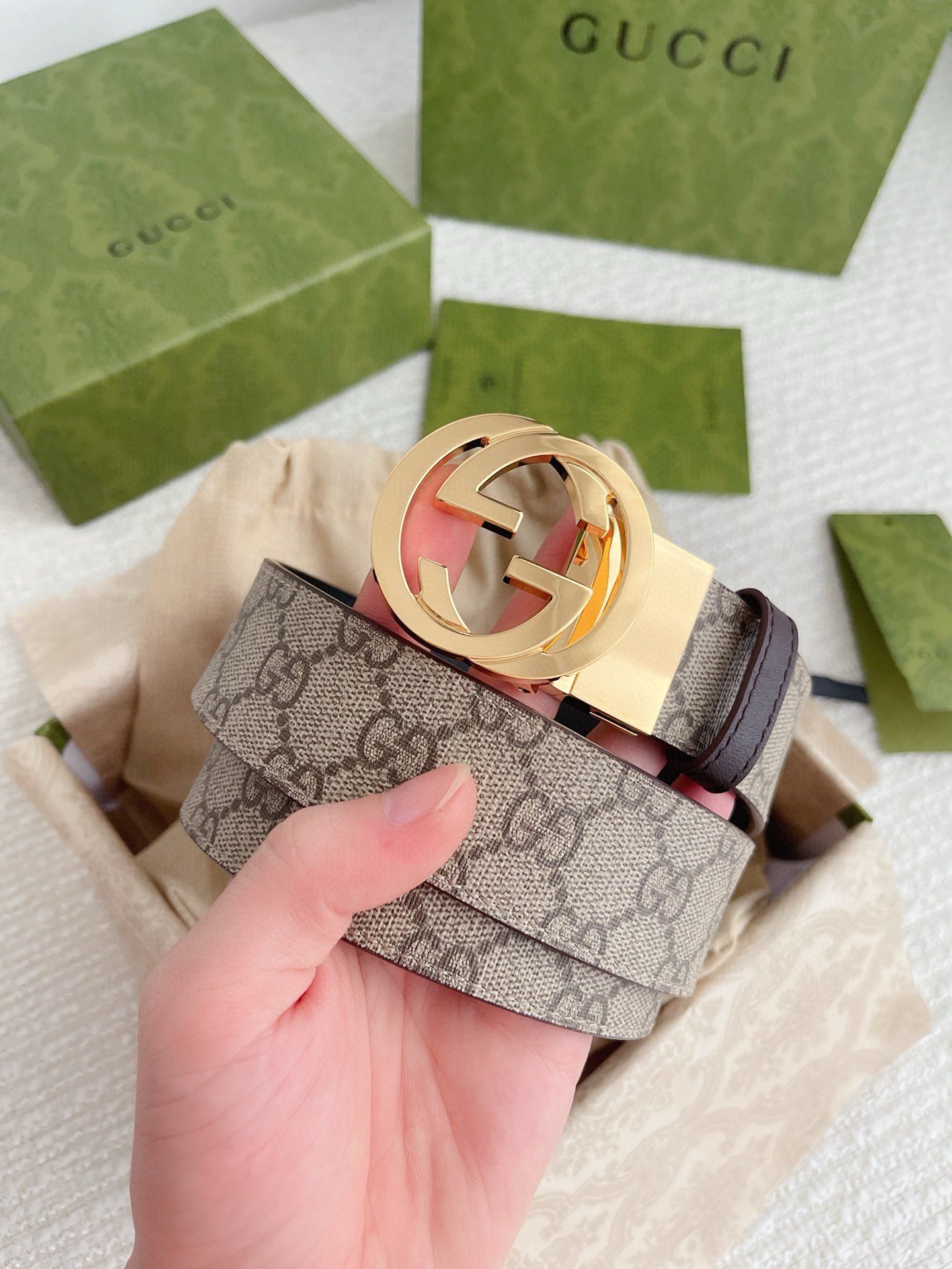 1.Elegant design: The belt is made of classic brown color with metal buckle, which is low-key yet luxurious. The buckle is printed with the GUCCI brand’s classic logo, highlighting the brand’s charm.
