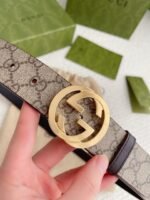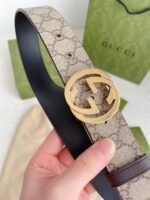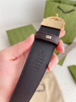 1.Elegant design: The belt is made of classic brown color with metal buckle, which is low-key yet luxurious. The buckle is printed with the GUCCI brand’s classic logo, highlighting the brand’s charm.