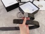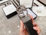 Gucci’s classic double G black textured belt, with its simple yet elegant design, highlights the brand’s unique charm. Made of top-quality leather and processed with exquisite craftsmanship, the belt surface presents a delicate and shiny texture. The double G logo in the center of the belt is embossed with a strong three-dimensional sense, forming a sharp contrast with the black leather, showing luxury and taste.