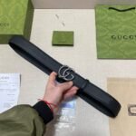 The Gucci double G buckle black belt interprets the perfect fusion of luxury and fashion with its excellent craftsmanship and ultimate quality. Selected top-grade genuine leather material, soft and elastic to the touch, bringing you the ultimate comfort experience. Made of high-quality metal, it has a shiny luster and highlights the unique charm of the Gucci brand.