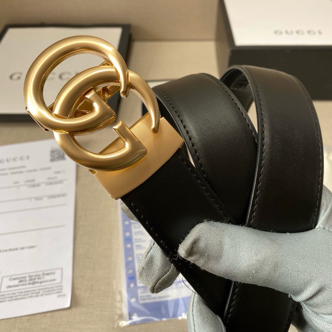 Home Belt GUCCI Belt Gucci classic double G buckle black belt, simple and elegant, noble and elegant