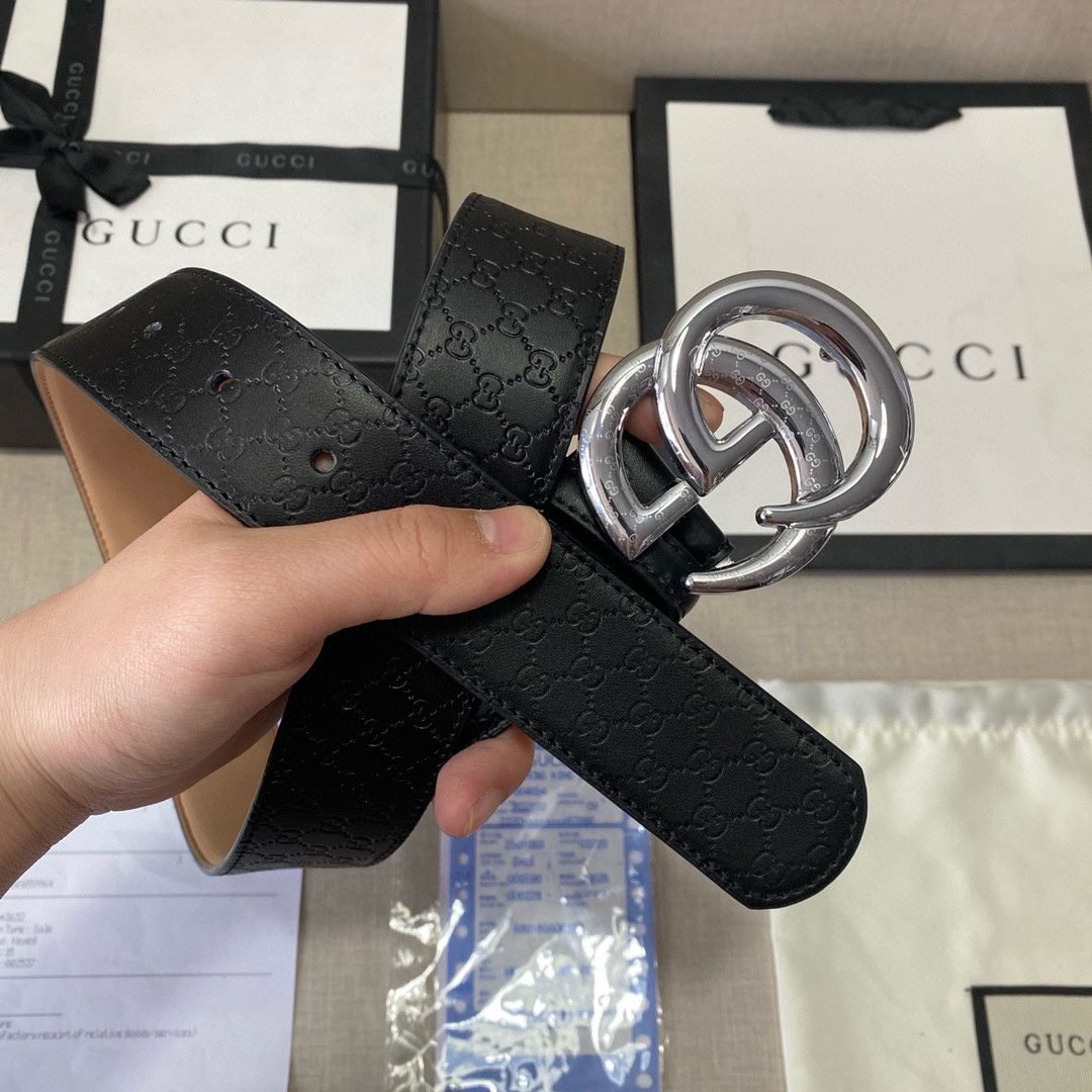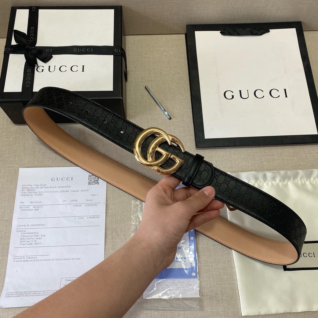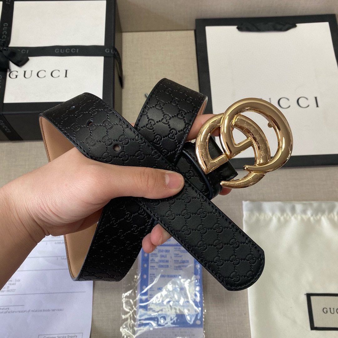 Home Belt GUCCI Belt Gucci classic double G buckle black textured belt, simple and elegant, noble and extraordinary