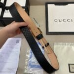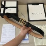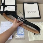 This Gucci classic double G buckle black textured belt interprets the combination of elegance and fashion with its unique brand charm and excellent quality. Made of selected high-quality leather material and processed with exquisite craftsmanship, the belt shows a deep black luster, is soft to the touch and elastic. The belt buckle is designed in metal and is inlaid with the iconic double G logo. It is simple yet grand, highlighting the wearer’s noble taste and extraordinary temperament.