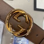 This GUCCI classic brown-beige belt shows the elegance and nobility of the GUCCI brand with its unique brown tone and classic metal double G logo buckle. The belt is made of high-quality leather, which is soft and elastic to the touch. Even after time, it still maintains its original luster and texture. This belt not only demonstrates the wearer’s taste and status, but is also a fashionable item worth collecting.