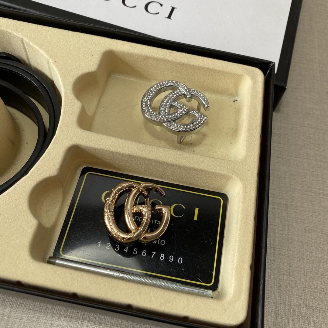 GUCCI, a luxury brand from Italy, has become a leader in the global fashion industry with its unique creativity, exquisite craftsmanship and deep understanding of fashion. This classic double G black belt gift box set is an outstanding representative of the GUCCI brand.The double G logo on the belt is not only a symbol of the GUCCI brand, but also a reflection of fashion and taste. The black belt and the golden double G logo complement each other, simple yet elegant, showing the wearer’s unique taste and personality.