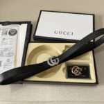 GUCCI, a luxury brand from Italy, has become a leader in the global fashion industry with its unique creativity, exquisite craftsmanship and deep understanding of fashion. This classic double G black belt gift box set is an outstanding representative of the GUCCI brand.The double G logo on the belt is not only a symbol of the GUCCI brand, but also a reflection of fashion and taste. The black belt and the golden double G logo complement each other, simple yet elegant, showing the wearer’s unique taste and personality.