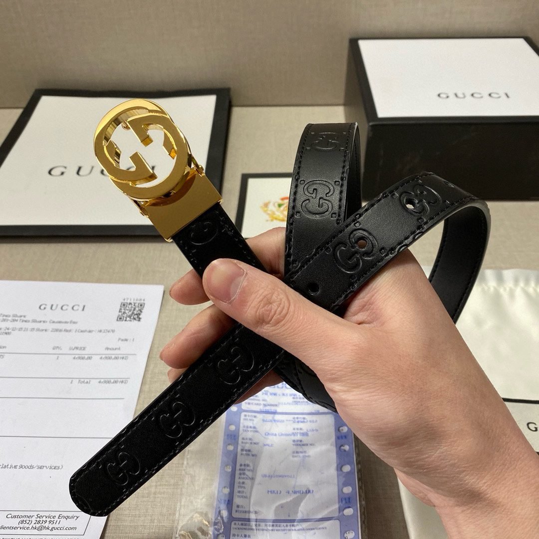 This GUCCI classic double G logo black belt not only reflects the brand’s consistent luxury and refinement, but also highlights the brand’s unique charm in the details. The belt is made of high-quality leather, soft and delicate to the touch, and durable. The golden double G logo is inlaid on the black belt, shining brightly, simple yet elegant, highlighting the wearer’s extraordinary taste.