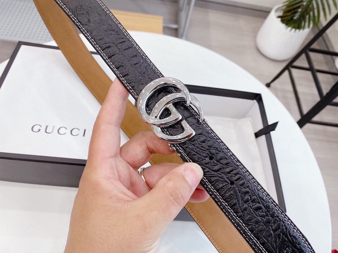 The Gucci classic double G pattern black belt, with its excellent quality and unique design, shows the eternal charm of the Gucci brand. The belt is made of top-grade leather, which is soft and elastic to the touch, ensuring a comfortable experience for long-term wear. The black tone is matched with exquisite texture design, highlighting the low-key luxury style. The gold (silver) double G logo buckle is made of exquisite craftsmanship and shines brightly, which is a perfect presentation of the brand’s classic elements.