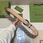 Gucci classic "GG" pattern brown and beige leather belt, soft to the touch, detailed oil edges, extremely durable $210.00 Original price was: $210.00.$66.69Current price is: $66.69.