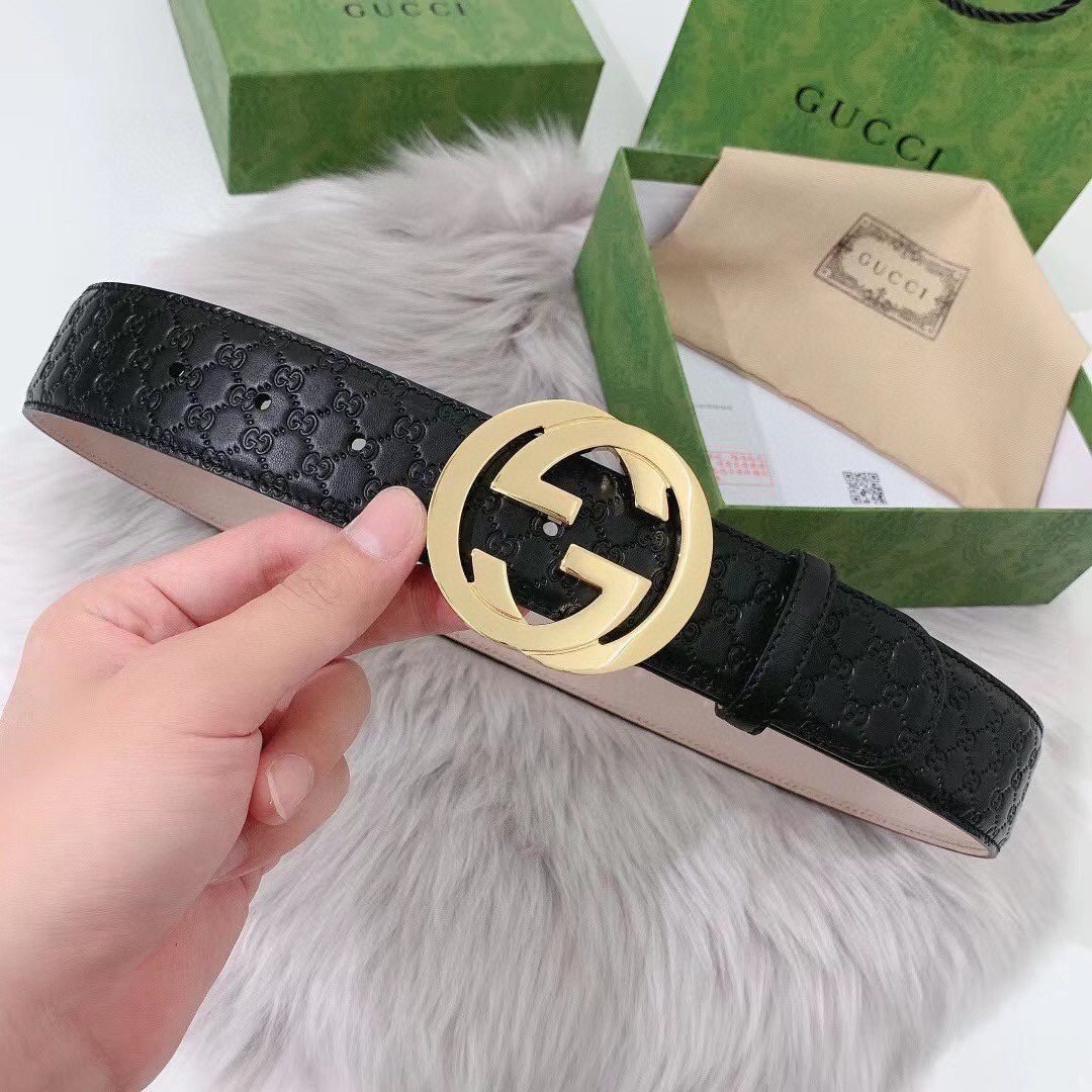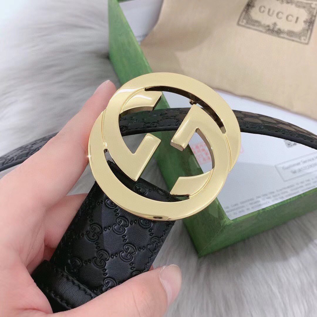 Home Belt GUCCI Belt Gucci classic gold buckle G pattern black belt simple atmosphere low-key luxury