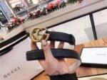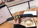 GUCCI’s classic gold G-shaped buckle black textured belt, with its unique gold G-shaped buckle and classic black leather, perfectly blends fashion and luxury. The golden G-shaped buckle has an exquisite design and high gloss, highlighting the noble temperament of the brand. The high-quality black leather is soft, durable and comfortable to the touch, adding a touch of elegance to your daily wear.