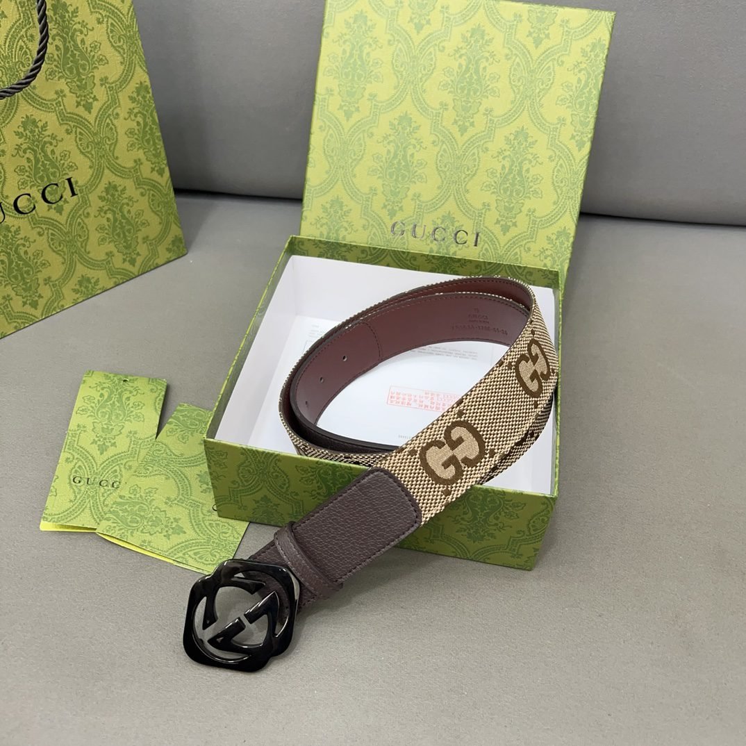 Home Belt GUCCI Belt Gucci classic brown pattern belt, comfortable to touch, brown and beige interwoven design, delicate and smooth belt surface