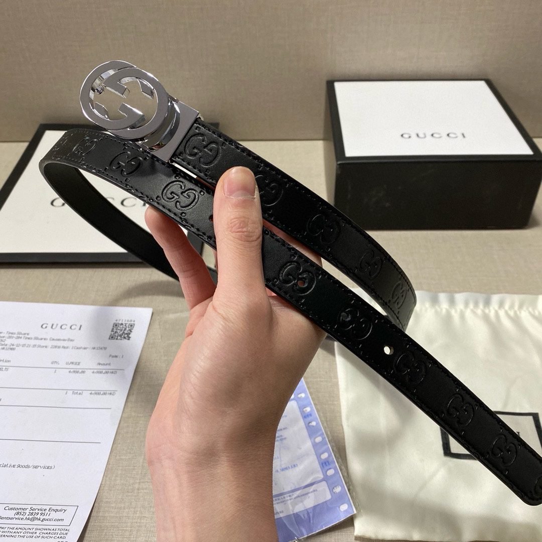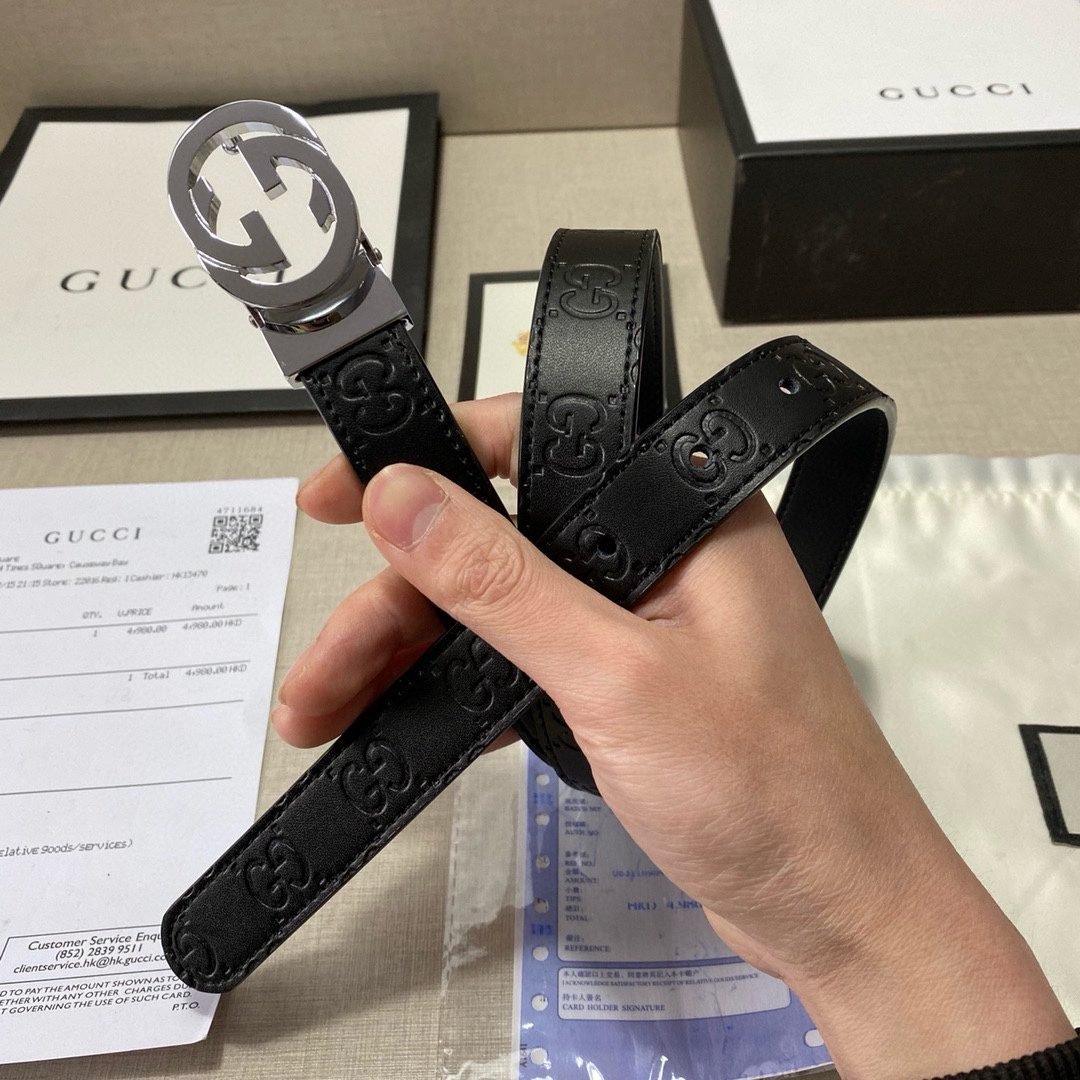 This GUCCI classic double G logo black belt not only reflects the brand’s consistent luxury and refinement, but also highlights the brand’s unique charm in the details. The belt is made of high-quality leather, soft and delicate to the touch, and durable. The silver double G logo is inlaid on the black belt, shining brightly, simple yet elegant, highlighting the wearer’s extraordinary taste.