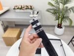 This Gucci silver G buckle black belt shows the brand’s high-end charm. The black belt is made of high-quality leather, with a delicate touch and a warm luster, exuding a low-key sense of luxury. The golden G buckle on the belt has a simple and eye-catching design, highlighting the wearer’s distinguished status and unique taste. At the same time, the belt is made with exquisite craftsmanship, has excellent texture, is strong and durable, and can accompany you through countless wonderful moments.