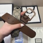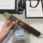 Gucci’s classic square buckle brown and beige intertwined belt interprets the brand’s classics and luxury with its unique charm and unparalleled craftsmanship. The belt is made of high-quality brown leather, with a lustrous surface, a delicate and smooth feel, and great texture. Made of golden metal material, it is shiny, sturdy and durable, showing nobility and fashion.