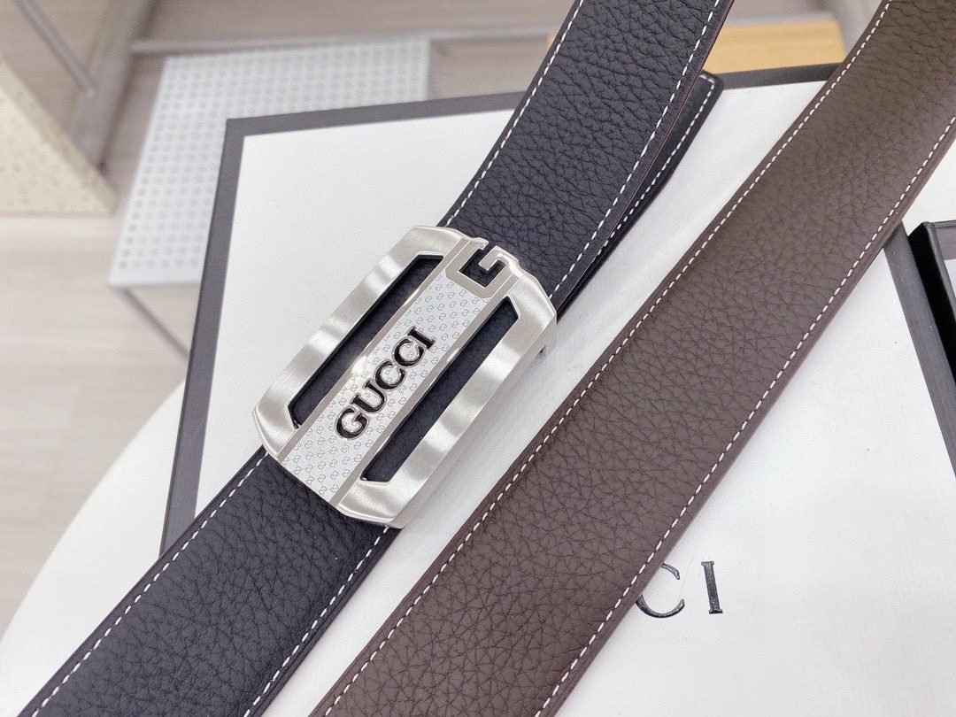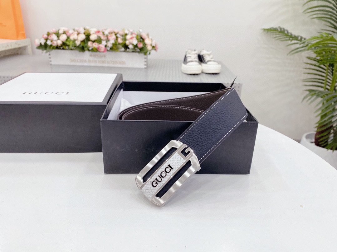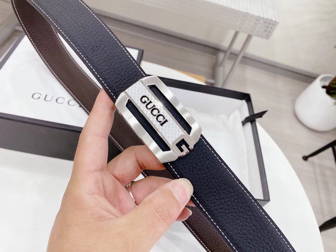 This Gucci classic two-tone metal buckle belt is suitable for a variety of formal and casual occasions and is an indispensable fashion item in a man’s wardrobe. Whether paired with a suit to attend a business meeting or paired with jeans for a casual trip, it can show the wearer’s unique taste and fashion charm.