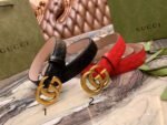 GUCCI’s classic two-color belt series perfectly combines the brand’s exquisite craftsmanship with fashion elements. Made of high-quality leather materials, it is finely polished to present a silky and delicate touch and tough and wear-resistant characteristics. The belt buckle is designed with the brand’s iconic double G pattern, and the gold embellishment makes it more noble and elegant. The classic black and red colors can be easily matched with various clothing to show unique personality and taste.