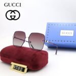 Crafted with lightweight metal to create a slim frame, showcasing an elegant and exquisite design style. The double “G” logo on the edge of the frame highlights the brand’s unique charm, and the gradient gray lenses are fashionable and practical. This pair of glasses is not only a fashion accessory, but also a symbol of taste. Suitable for various occasions, whether for leisure vacation or business travel, it can showcase your unique taste.