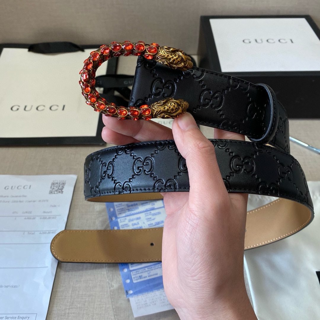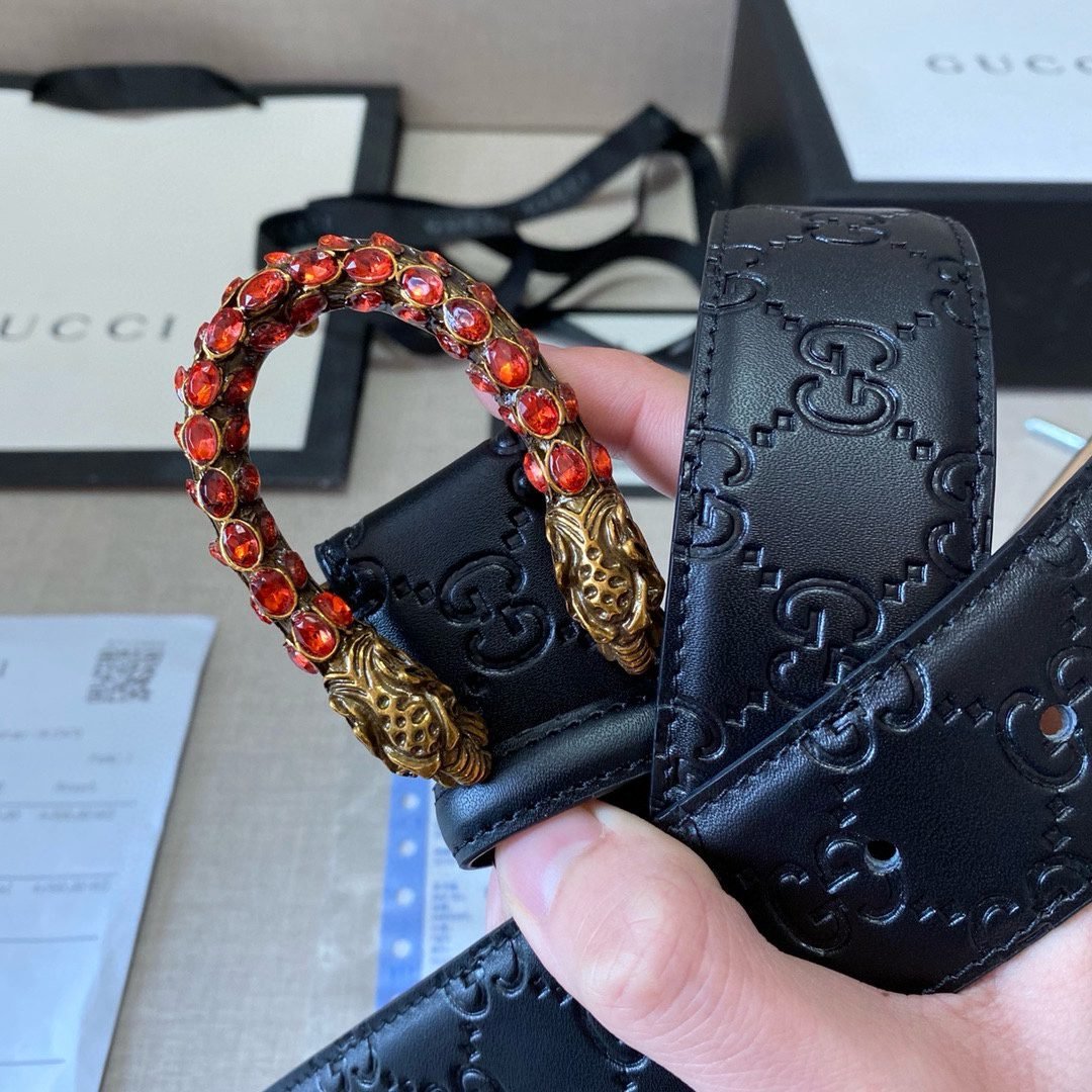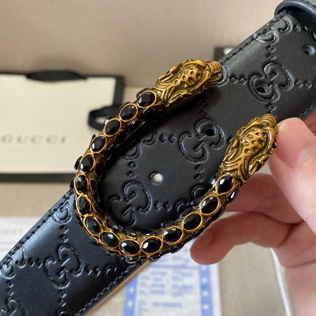 Home Belt GUCCI Belt Gucci diamond-studded black textured belt is elegant and luxurious