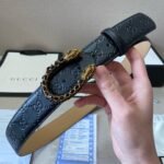 Gucci diamond-studded black textured belt is not only a fashion accessory, but also a symbol of men’s taste and status. Whether it is a business occasion or a leisure time, it can add a touch of color to your overall look and highlight your unique charm.
