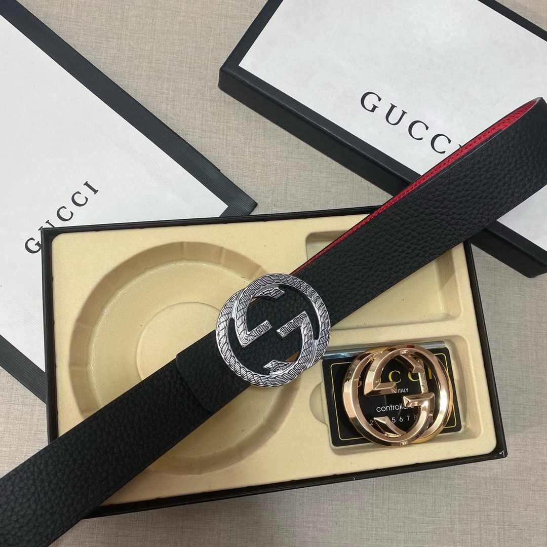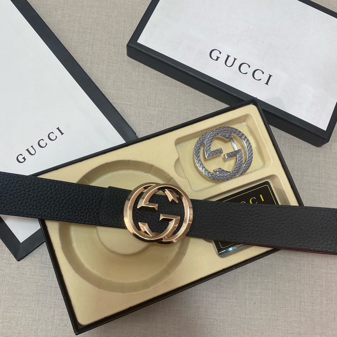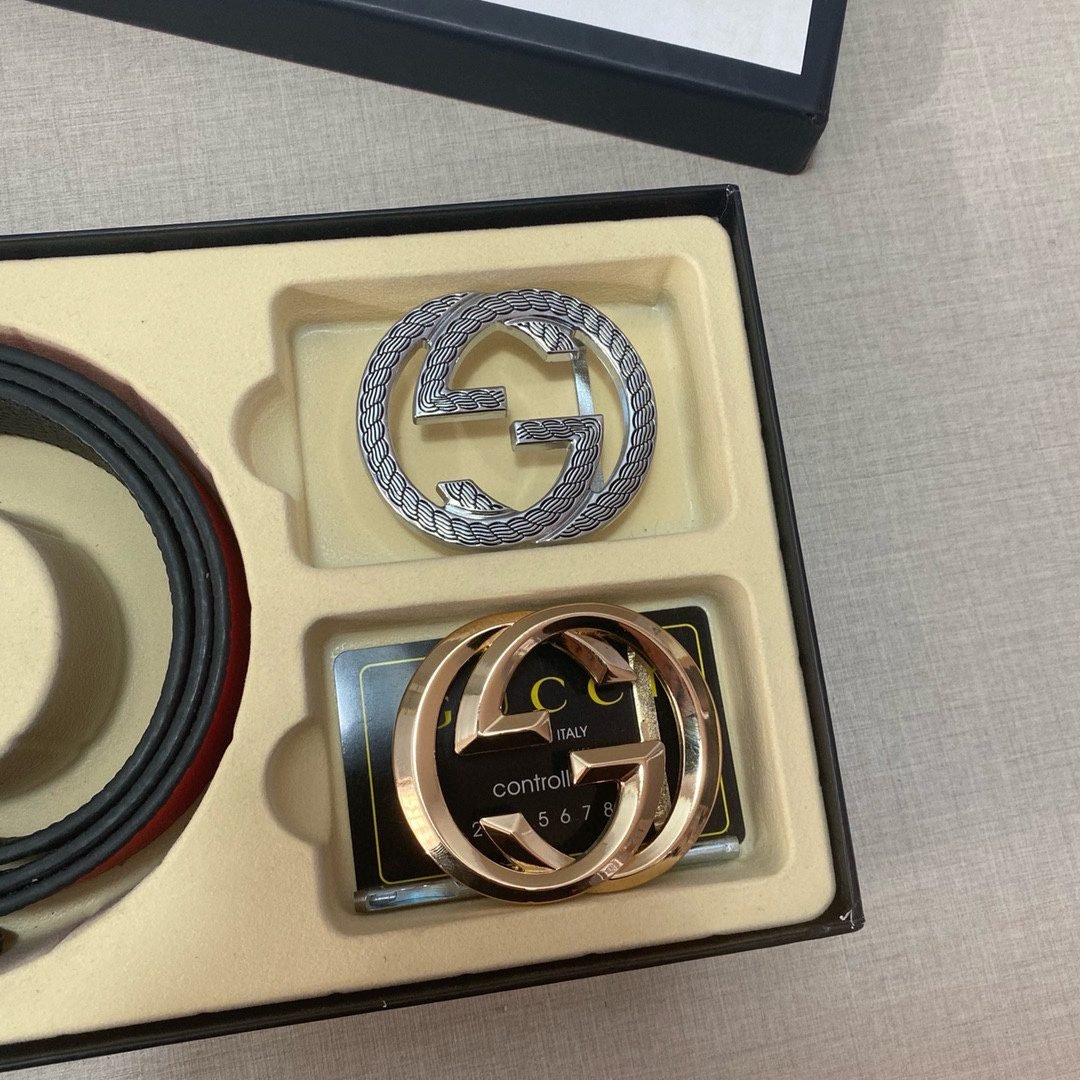 Home Belt GUCCI Belt Gucci double buckle gift box set, simple and elegant, low-key and luxurious