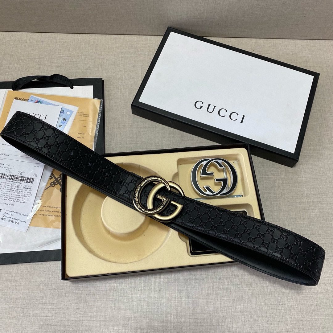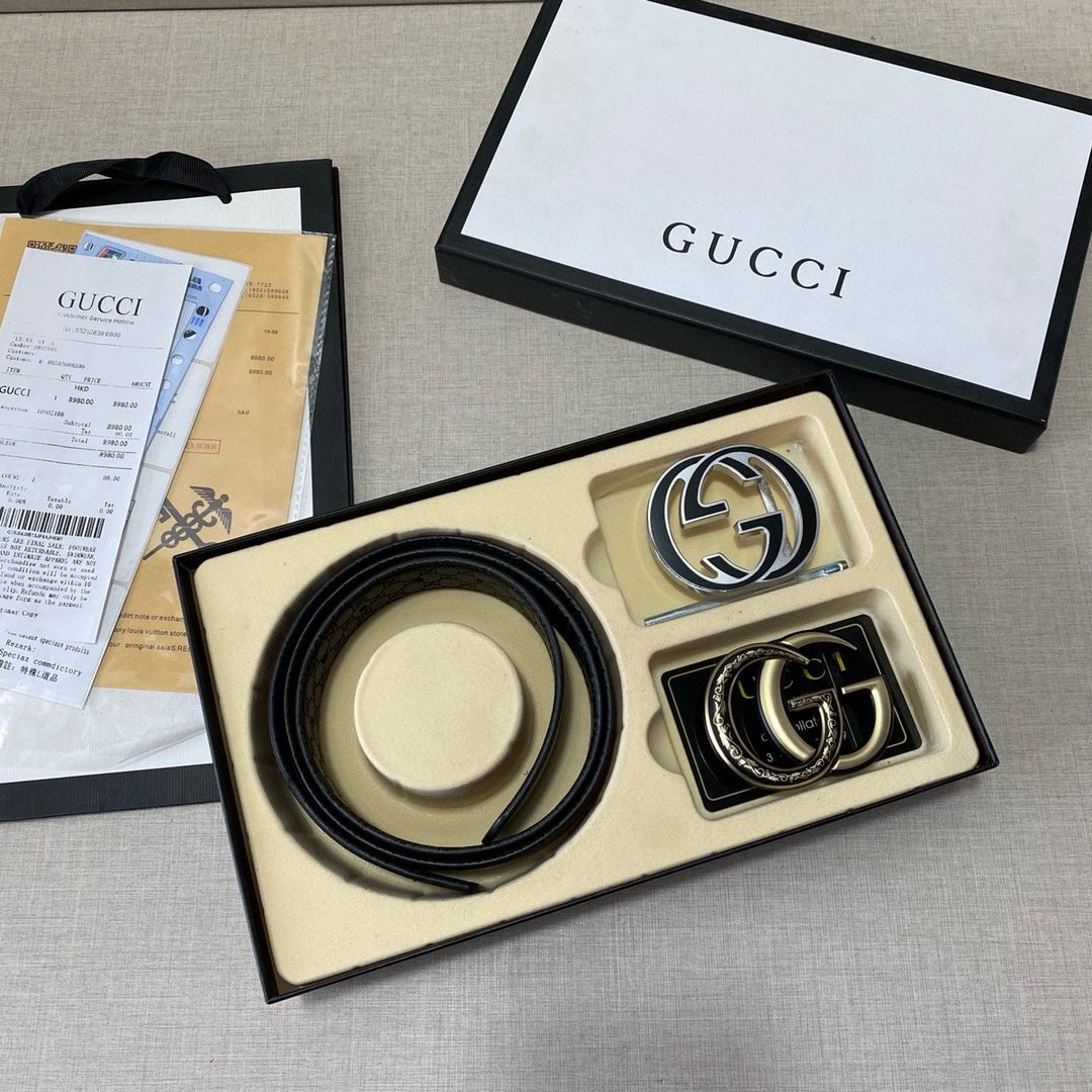 The Gucci double-buckle gift box set is designed with the unique double G logo as the core, showing nobility and taste. The belt is made of top-grade genuine leather, which is soft and delicate, wear-resistant and durable, and at the same time elegant and fashionable. In addition, the gift box is equipped with two different buckles, which are made with exquisite craftsmanship and have a dazzling luster, showing extraordinary status.