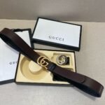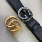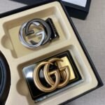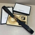 The GUCCI double buckle gift box set, with its unique design concept and excellent quality, highlights the brand’s unparalleled charm. This belt is made of top-grade black leather, which is soft and delicate to the touch, with extremely high gloss, showing unparalleled texture. The double G buckle design is exquisite and unique, made of metal, which forms a sharp contrast with the black belt, making it more fashionable. In addition, the gift box is equipped with two different buckles to meet your dressing needs for different occasions. The overall design is exquisite and sophisticated, showing the wearer’s dignity and taste.