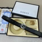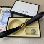 The Gucci two-button gift box set combines elegance and luxury. It is made of fine black leather, which is delicate and elastic to the touch, showing an unparalleled texture. It is paired with a gold buckle to highlight your nobility and taste, making you stand out from the crowd. The suit also contains two buckles of different sizes, which can be freely adjusted according to the waistline to meet the dressing needs of different occasions.