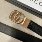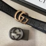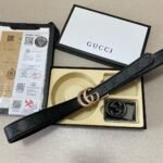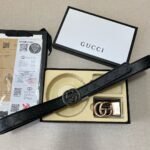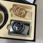 The Gucci two-button gift box set demonstrates unparalleled fashion taste with its unique design and high-quality materials. The belt is made of selected high-quality leather, which is soft and delicate to the touch and has a natural luster. There are two different buckles in the box, one is classic black, elegant and suitable for various formal occasions; the other has a unique gold design, fashionable and avant-garde, suitable for leisure time. Highlighting the brand’s charm, people can recognize the extraordinary identity of this belt at a glance.