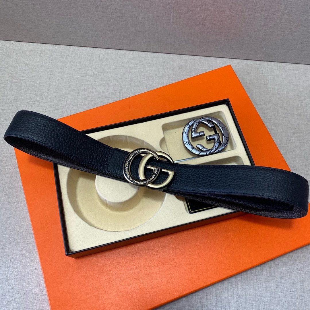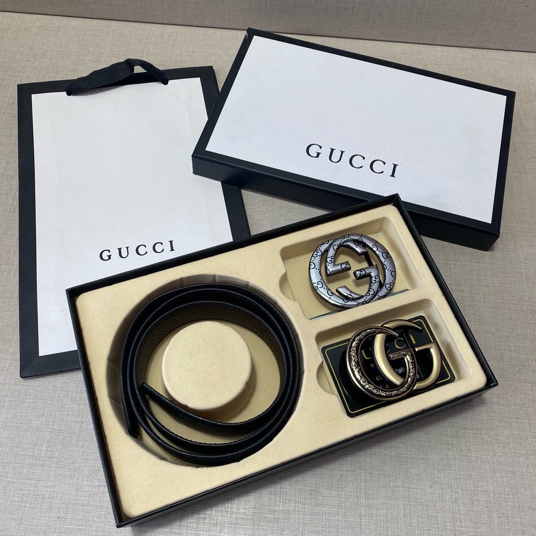 This Gucci double-button gift box set is inspired by the brand’s iconic double G letters and combines modern craftsmanship with classic elements to show unparalleled fashion charm. The black belt color is classic and noble, and the choice of metal material ensures its strong and durable quality. The box is equipped with two different buckles, and the exquisite polishing process makes every detail exude an exciting luster.
